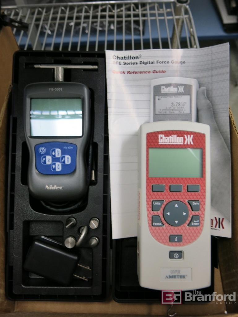 Chatillon DFE Servies Digital Force Gauge, (1) Nidec Model FG-3008 Digital Force Gauge
