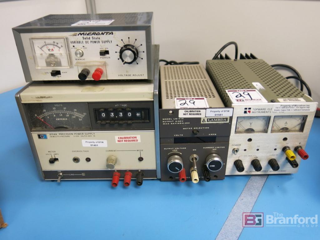 Micronta Solid State Variable DC Power Supply, HP Model 6114A Precision Power Supply, Lambda Model LG-413 Power Supply, Topward Electric Instruments Model TPS-2000 Power Supply