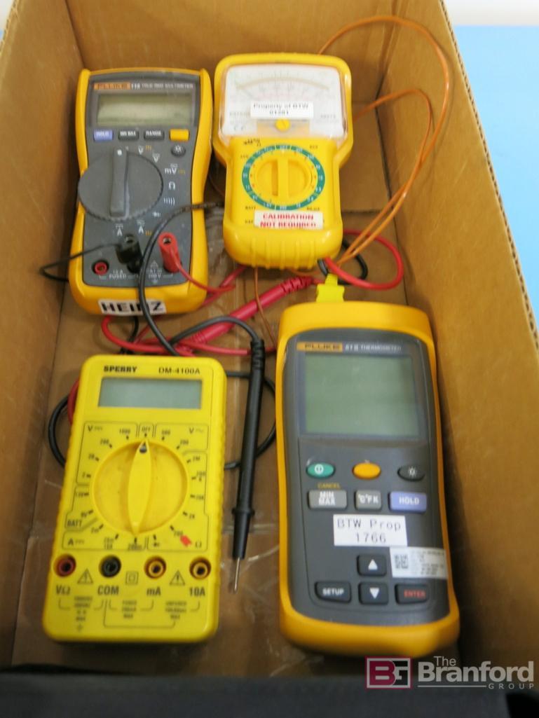 Fluke Model 115 True RMS Multimeter, (1) Sperry Model DM-4100A Meter, Fluke Model 51-II Thermometer, Extech Model 38073 Meter
