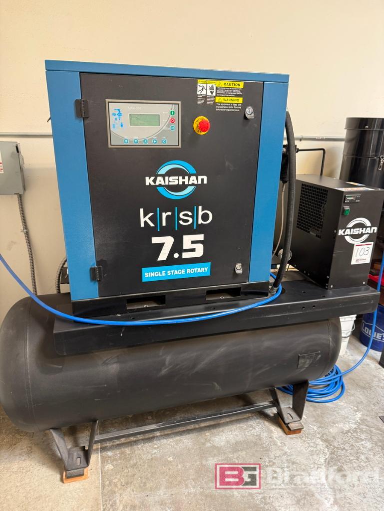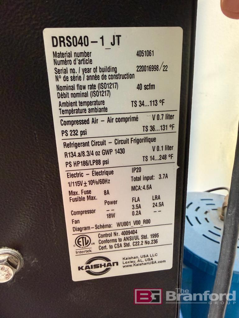 Kaishan krsb 7.5-HP Single Stage Rotary Air Compressor; Model: DRS040-1_JT; S/N 220016998/22