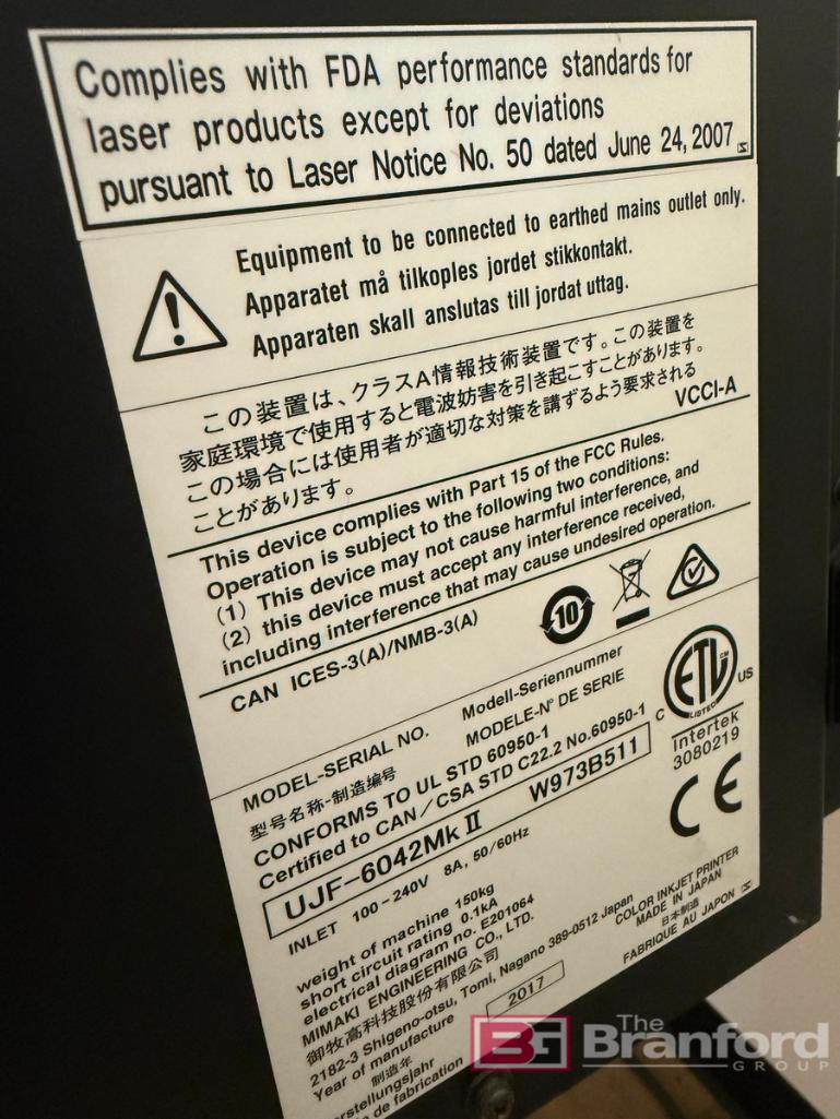 Mimaki UV Flatbed Printer; Model: UJF-6042Mk II; Date: 2017; S/N W973B511