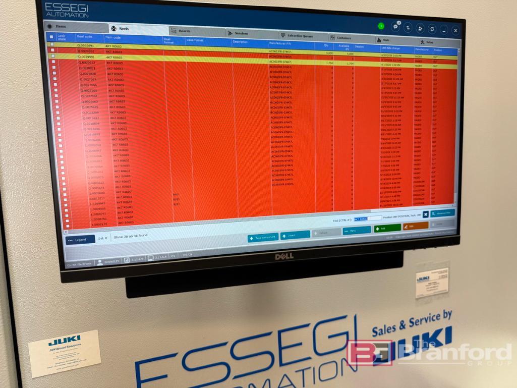 Juki / ESSEGI Automation Component Storage System; Model: ISM 3600; Supports 7" and 15" Reels; Humidity Control Package Date: 2022; S/N ISM 3600-0451